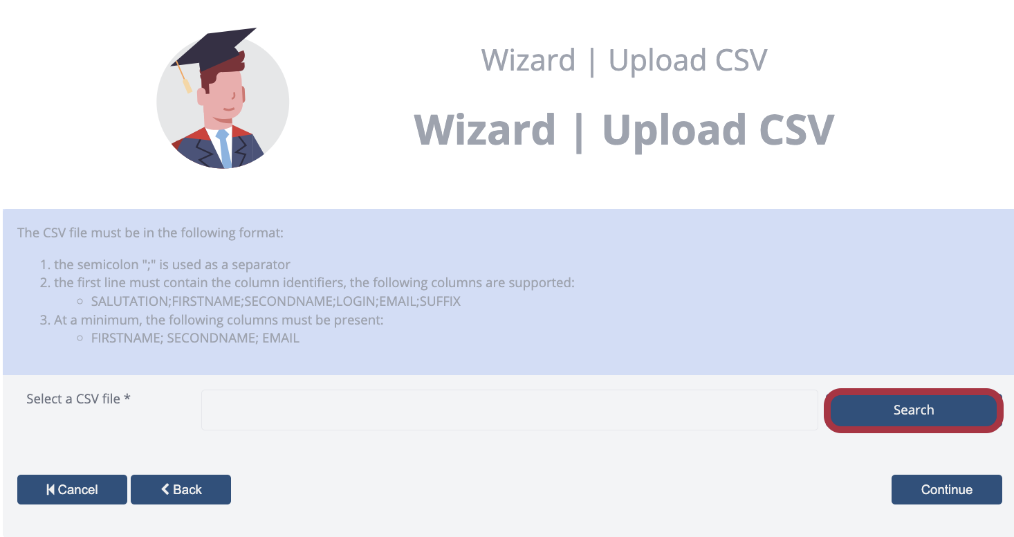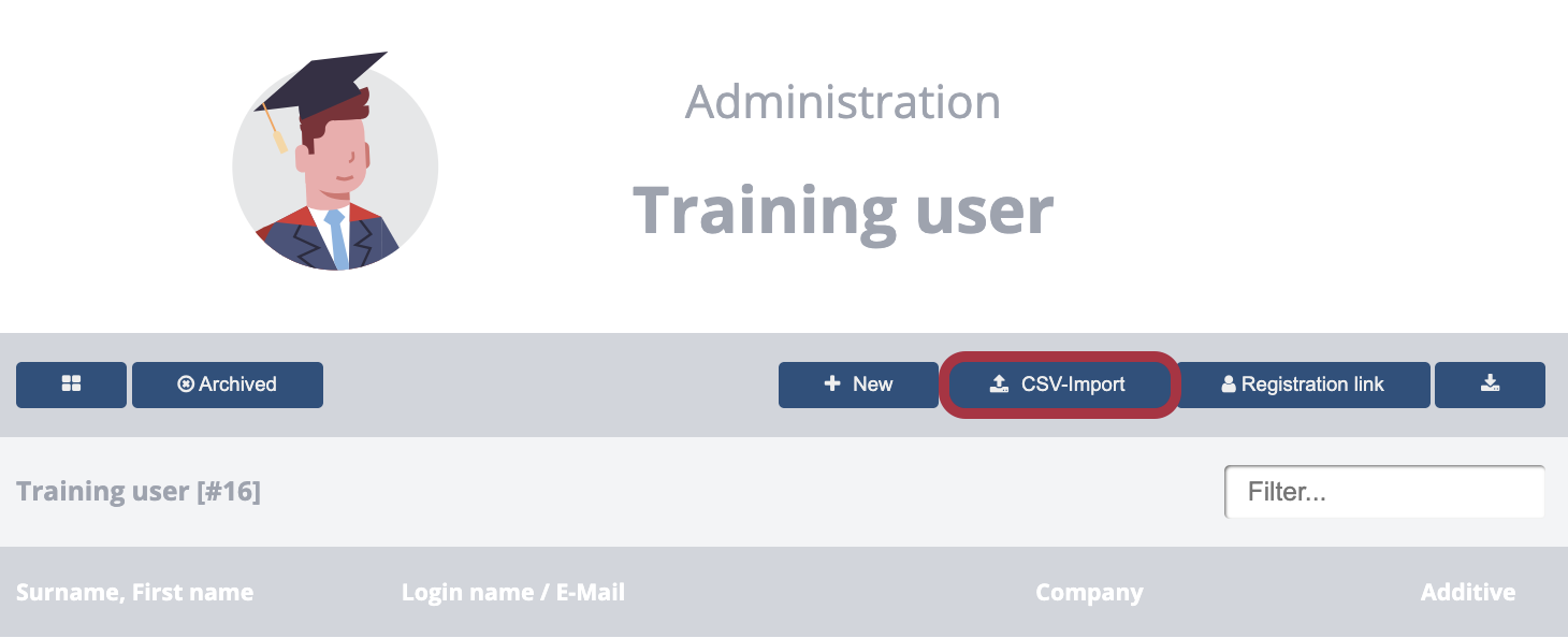 Go back to the participant overview and click on the CSV import button in the top right-hand corner.
