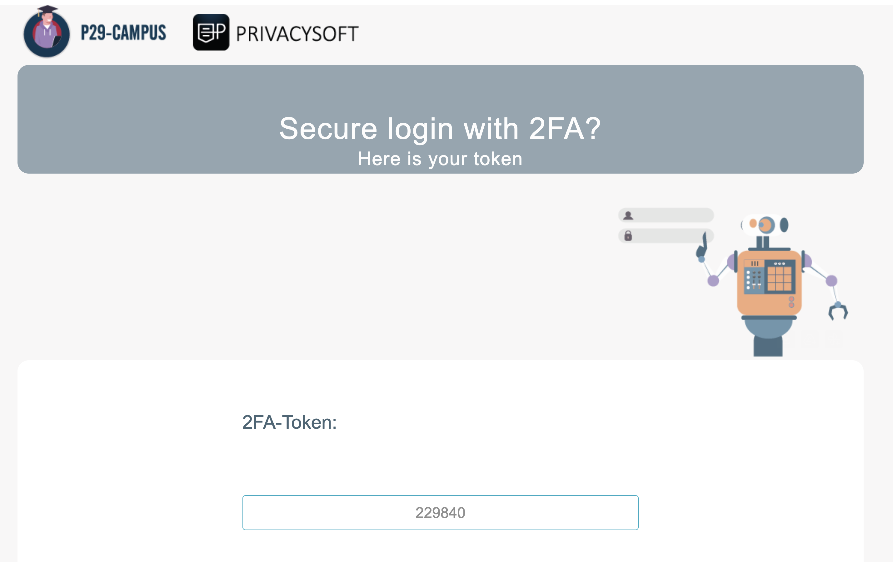 Hinweis: Der Versand des Tokens kann bis zu 5 Minuten dauern, erfolgt in der Regel jedoch schneller. Falls bei Ihnen nach längerer Zeit kein E-Mail ankommt, überprüfen Sie Spam-Postfach. Es könnnte zusätlich notwendig sein, dass Ihre IT unsere Domain privacysoft.online freigeben muss.