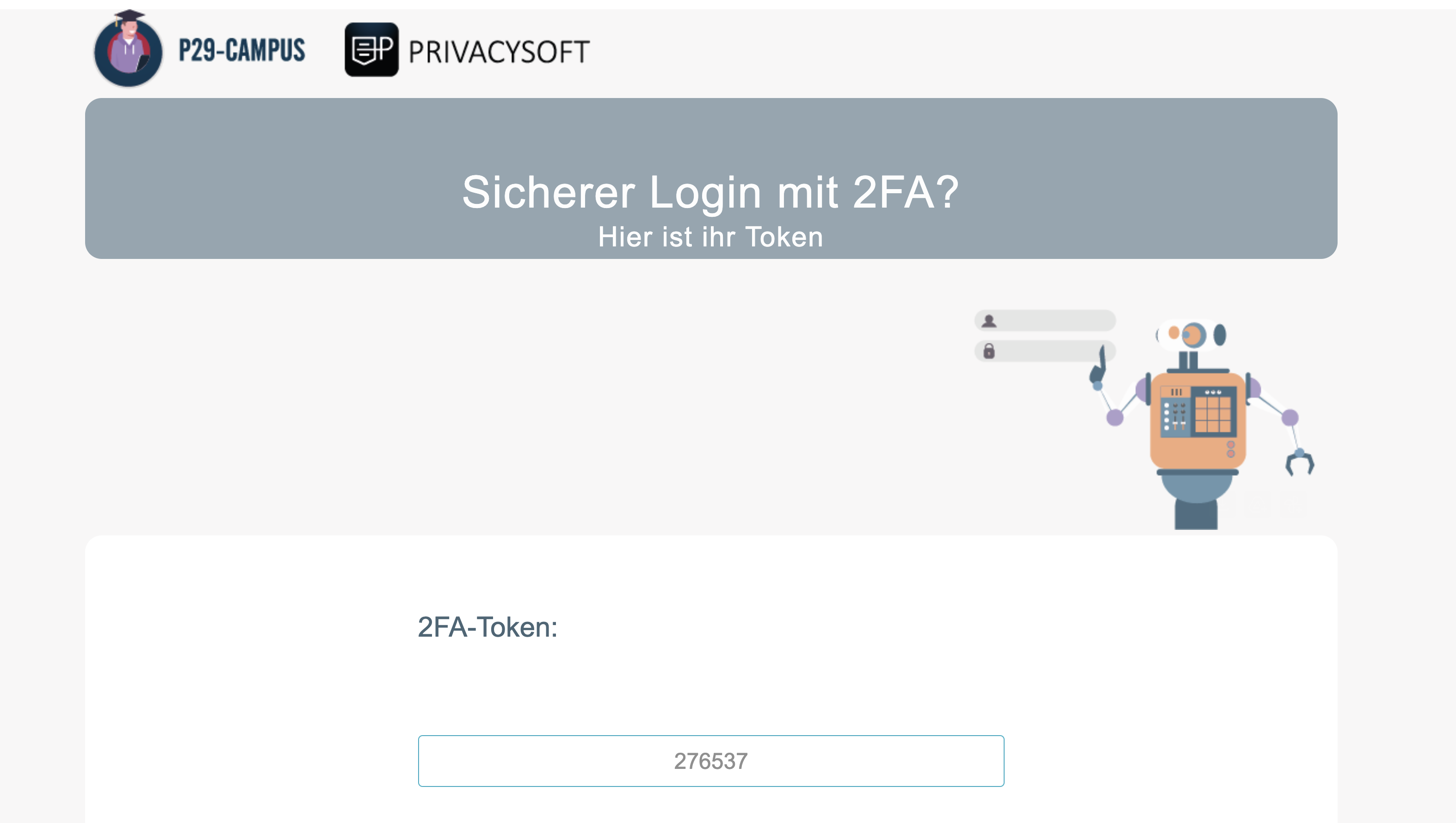 - Der Versand des Tokens kann bis zu 5 Minuten dauern, erfolgt in der Regel jedoch schneller.